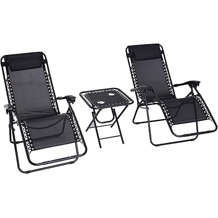 Outsunny 3pcs Folding Zero Gravity Chairs Sun Lounger Table Set W Cup Holders Reclining Garden Yard Pool Amazon Co Uk Garden Outdoors